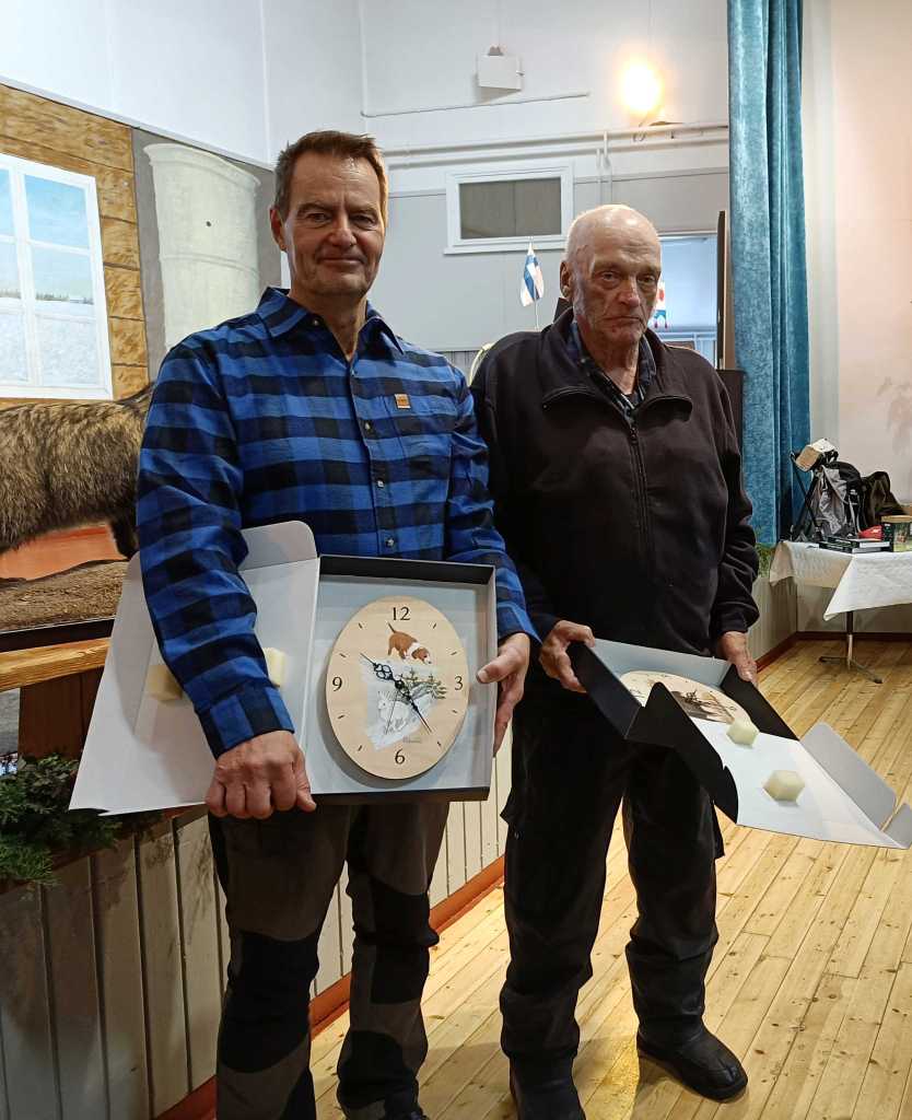 Seura palkitsi seinäkelloilla perustajajäsenet ja seuran ensimmäiset toimihenkilöt Juhani Talvensaari, Heikki Karila ja Seppo Kiiskinen. Kelloilla muistettiin myös seuran pitkäaikaista puheenjohtaja Jukka Ahoa ja monitoimihenkilö Ville Hiltusta, joka on vuosikymmenten aikana vastannut mm. majan hoidosta ja lihan myynnistä.