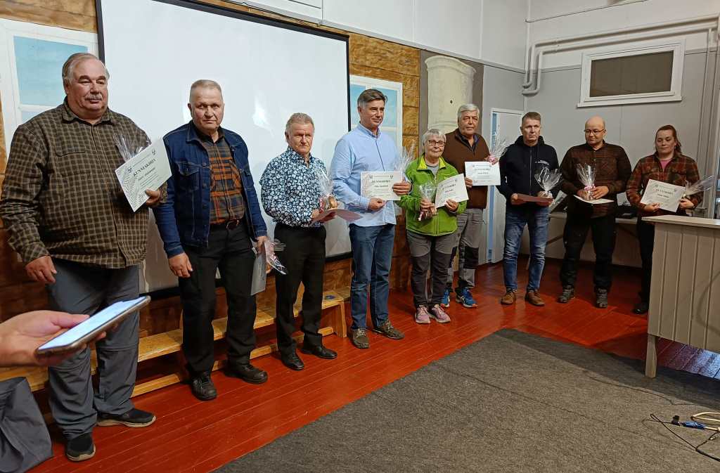 Riistahoitoyhdistyksen pronssisen ansiomerkin saivat Ilkka Ruha ja Jouni Pöntiö Lisäksi rhy muisti Kaarle Englundia tavaralahjalla, jotka saivat myös Ilkka Ruha ja Jouni Pöntiö.