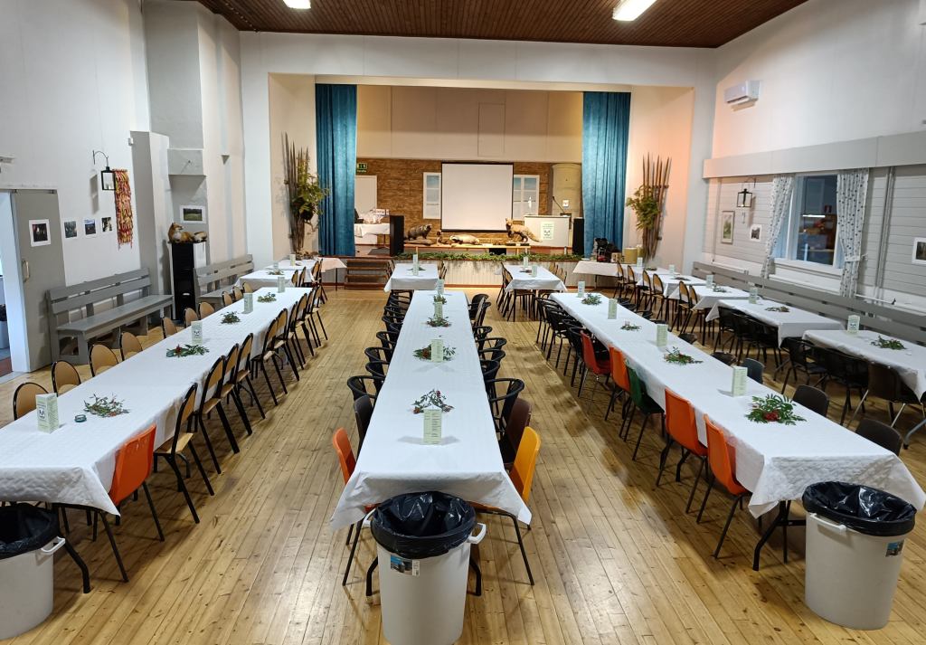 Suvanto-Kairan hirvipeijaisia ja 50-vuotisjuhlaa vietettiin 20.9.2025 Kairalan Kajastuksella lähes 250 juhlijan voimin. Päivä aloitettiin seuramme jäsenen Marja Kuuselan Café Vuopion valmistamalla maukkaalla käristyksellä ja kakkukahveilla. Itse juhla aloitettiin heti kun kaikki olivat saaneet vatsansa täyteen.